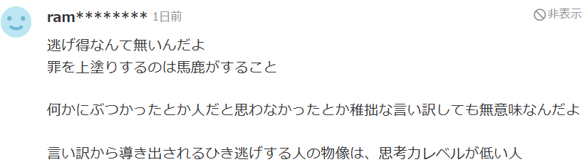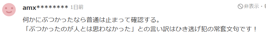 容疑 | 自動車運転処罰法違反(過失致死)、道路交通法違反(ひき逃げ) | |