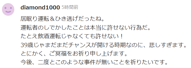 と供述しており、自動車運転処罰法違反(過失致死)と道交法違反(ひき逃げ)の疑いで逮捕されています。