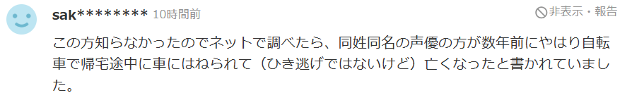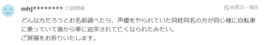 - 過去に同姓同名の声優も同じ理由で亡くなっていた